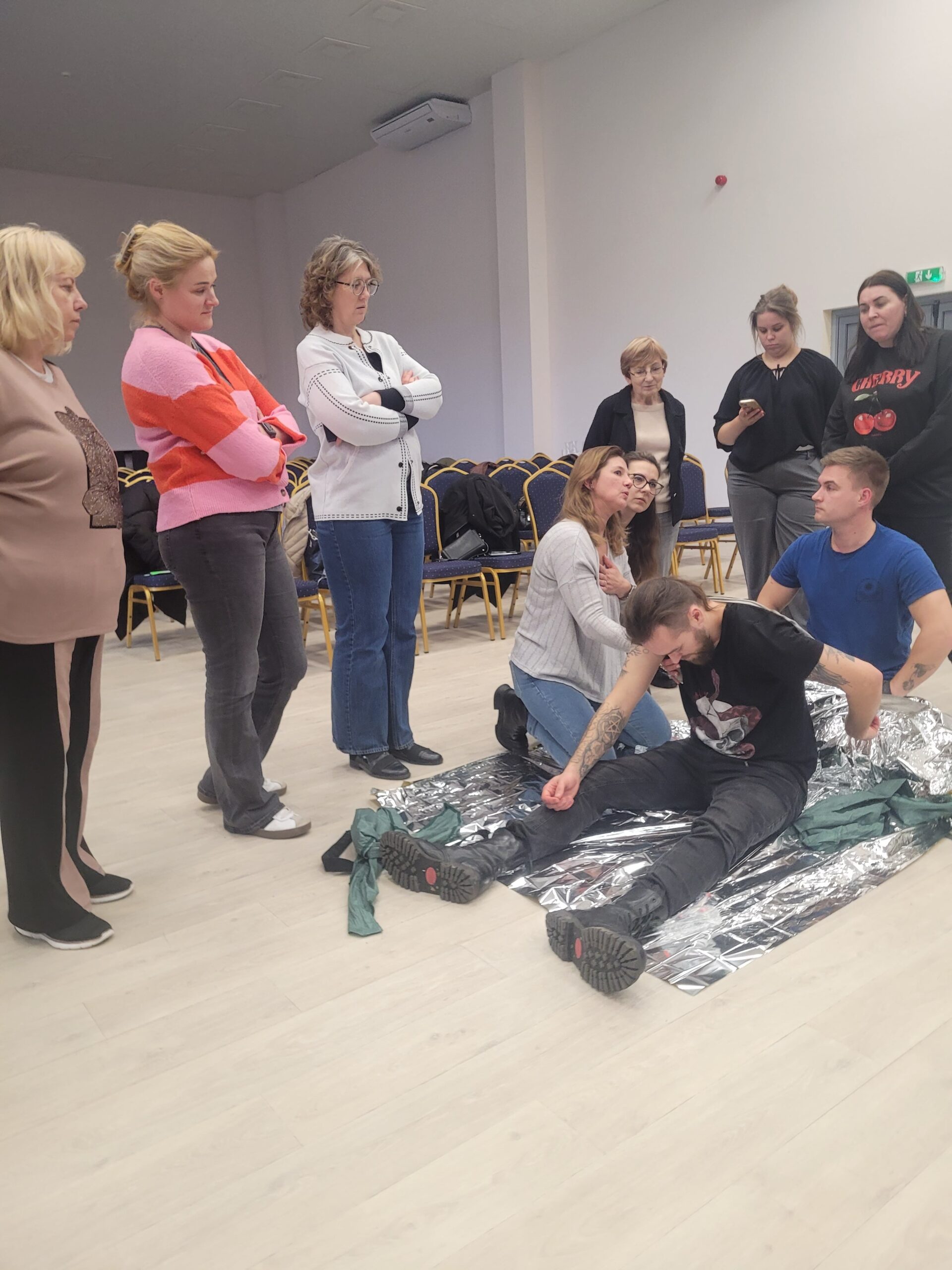 Spalio 30 d. Domeikavos laisvalaikio salėje vyko specializuoti mokymai „Pirmoji medicininė pagalba taktinėje aplinkoje“, skirti sveikatos priežiūros specialistams iš įvairių Kauno rajono savivaldybės sveikatos centro partnerių įstaigų. Iš viso 2025 metais mokymai buvo organizuoti 4 grupėms atitinkamai gegužės, birželio ir spalio mėnesiais. Mokymuose dalyvavo 59 sveikatos priežiūros specialistai iš 16 skirtingų įstaigų. Mokymai finansuoti Kauno rajono savivaldybės visuomenės sveikatos rėmimo specialiosios programos priemonės „Pirmosios pagalbos mokymai taktinėje aplinkoje“ lėšomis.